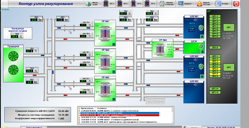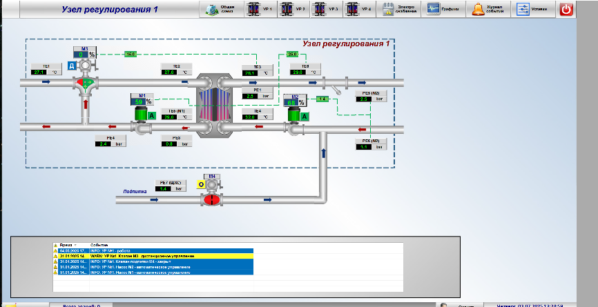Рисунок 2. Система управления и мониторинга узла регулирования №1 подачи охлаждающей жидкости, специализированное ПО, разработка компании РСК.