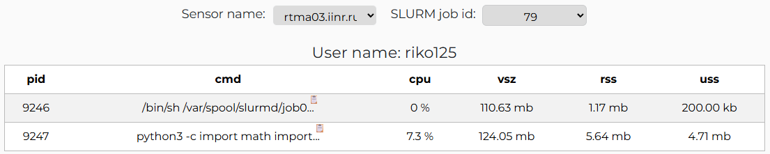 Рисунок 12. Мониторинг нагрузки счётного узла SLURM задачами, система StarLIT, вид: таблица, разработка рабочей группы HybriLIT.
