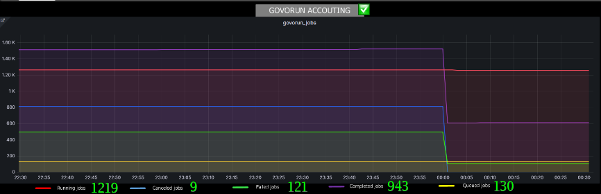 Рисунок 4. Мониторинг счётных очередей суперкомпьютера «Говорун», система GRAFANA, ЛИТ.