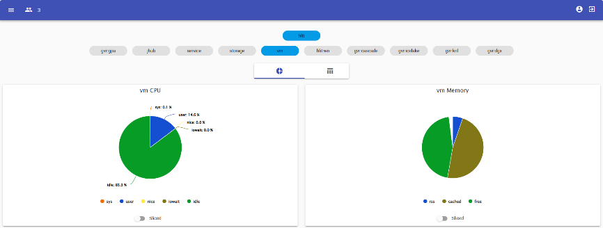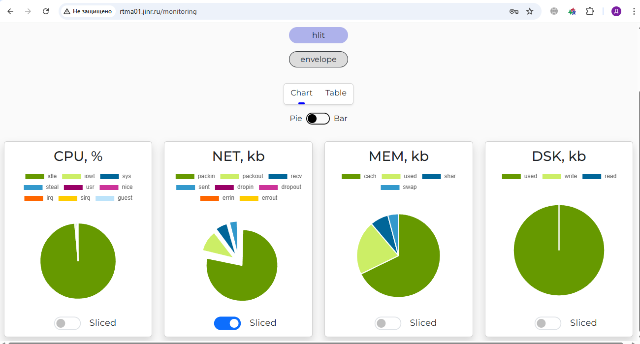 Рисунок 8. Мониторинг группы счётных узлов, режим «Standard», система StarLIT, вид: диаграммы, разработка рабочей группы HybriLIT.