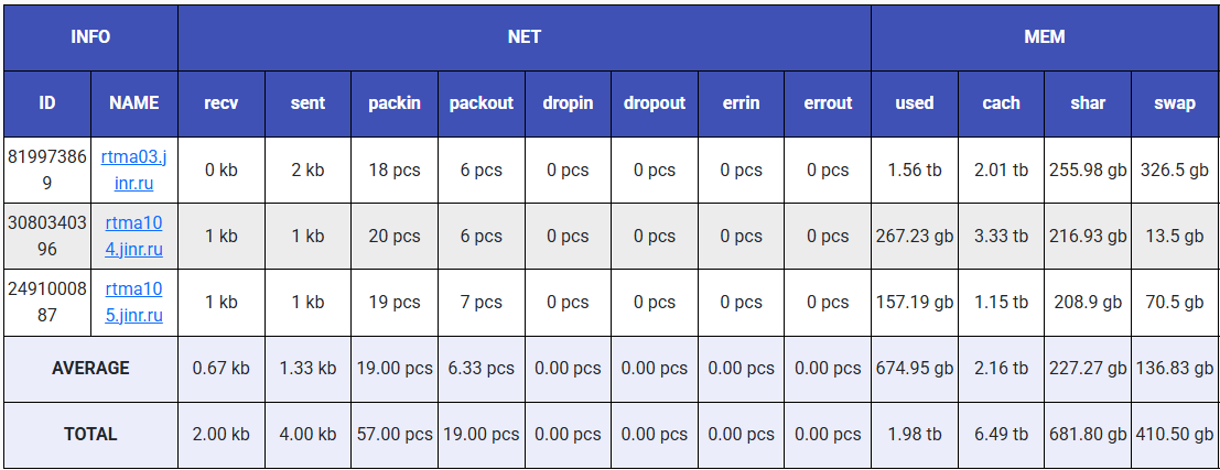 Рисунок 7. Мониторинг группы счётных узлов, режим «Standard», система StarLIT, вид: таблица, разработка рабочей группы HybriLIT.