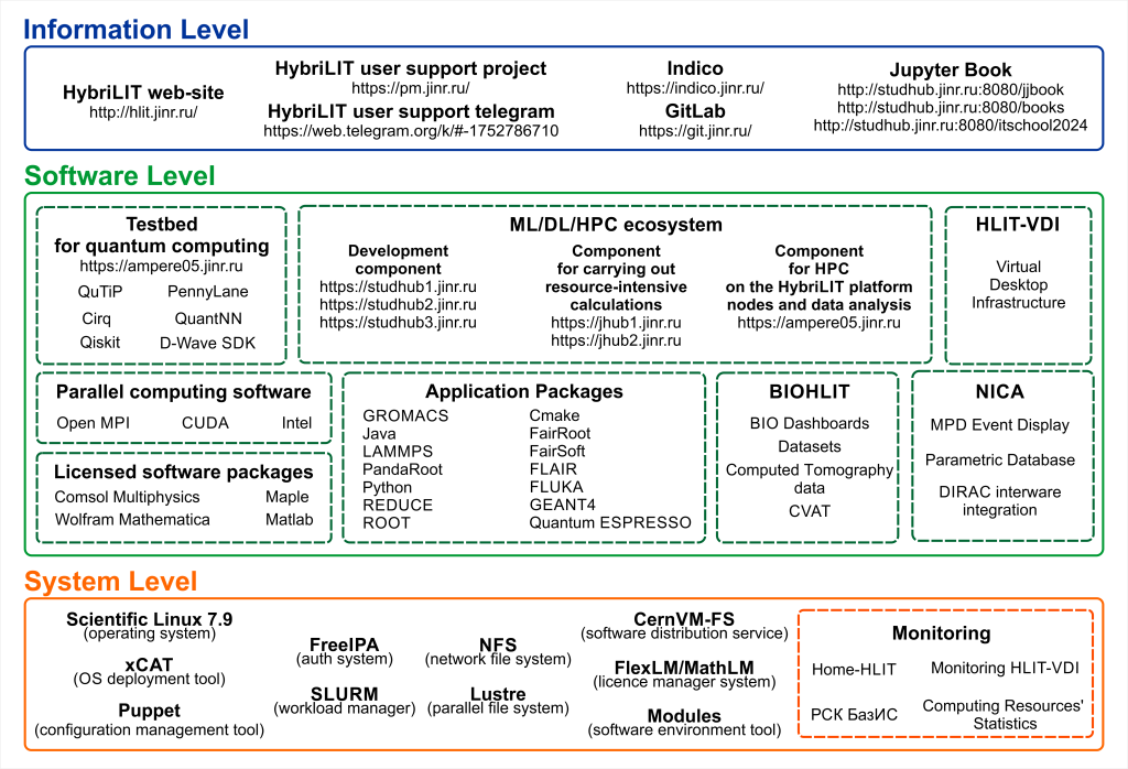 Гетерогенная платформа HybriLIT имеет единую трехуровневую программно-информационную среду для Учебно-тестового полигона и суперкомпьютера «Говорун».